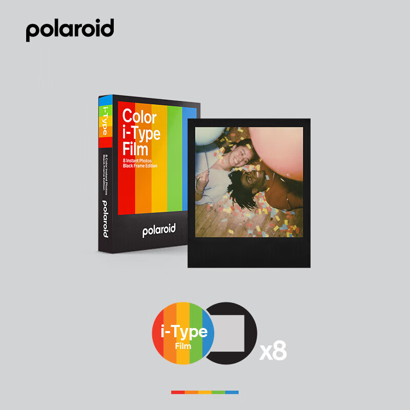 宝丽来 Polaroid 拍立得相纸 i-Type彩色胶片 一次成像相纸复古胶片 8张/包 黑框彩色 轻松拍摄你的宝丽来胶片,复古质感成像,经典方框,记录美好