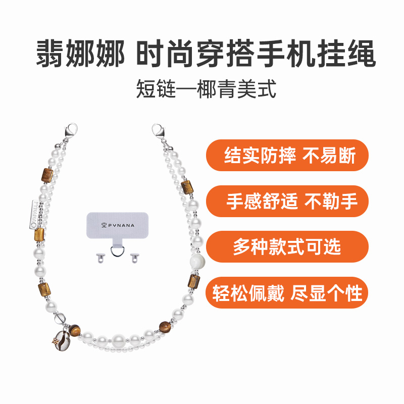 PYNANA翡娜娜 时尚穿搭手机挂绳短链 椰青美式 非遗级匠艺 日常吸睛利器