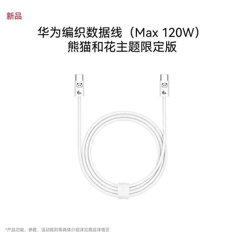 华为 原装 120W USB-C转USB-C 编织数据线 1.8m 白哑银 熊猫和花限定版 高强度编织纱线,120W大功率,适配USB-C接口手机电脑平板