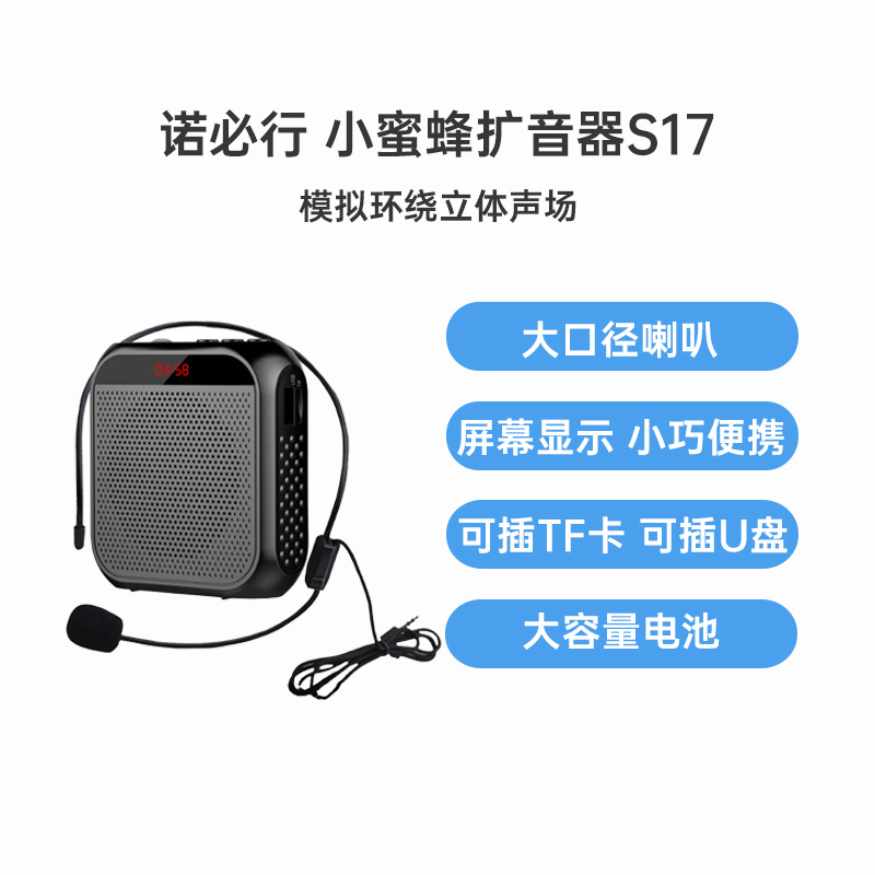 纽曼U-226小蜜蜂无线扩音器 黑色 原声扩音10W大喇叭,UHF快速配对,防啸叫,18h长续航