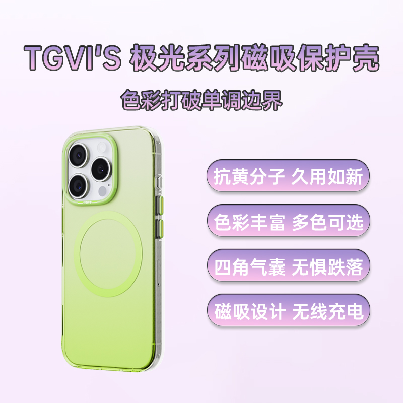 TGVIS iPhone 16 Pro Max 极光系列磁吸保护壳 青柠绿 镜框与背板一体化防护设计,防刮耐磨经摔不脱落