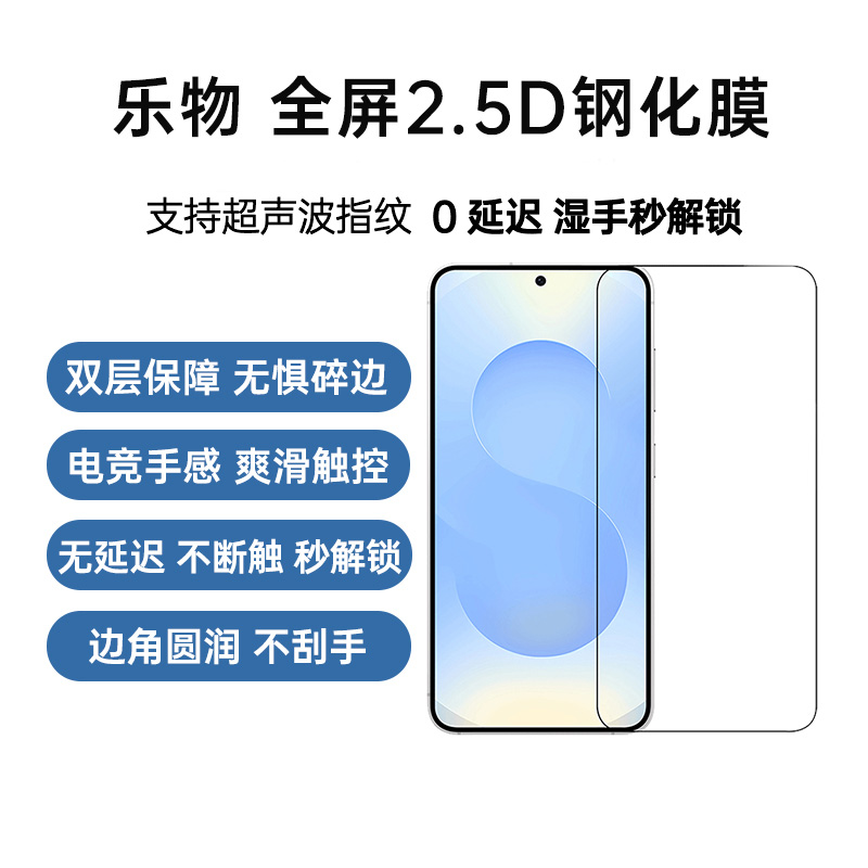 乐物 三星 S25 全屏2.5D钢化膜 支持超声波指纹解锁,电竞手感,爽滑触控,无延迟、不断触、秒解锁,边角圆润不刮手