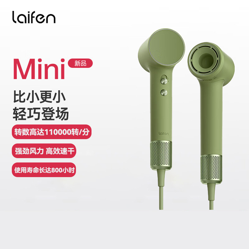 徕芬 Mini家用高速吹风机 抹茶绿 轻小的设计,顺手的握持,并适配儿童的专属模式