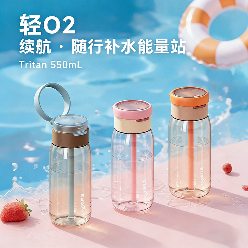 格沵 铃兰系列 闪耀水杯 520ML Tritan材质 绯红 原创铃兰IP,三饮口设计,Tritan母婴级材质,360°密封防漏。