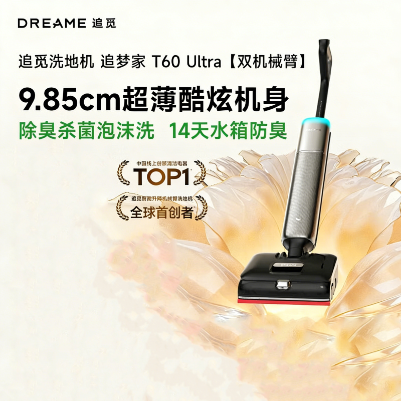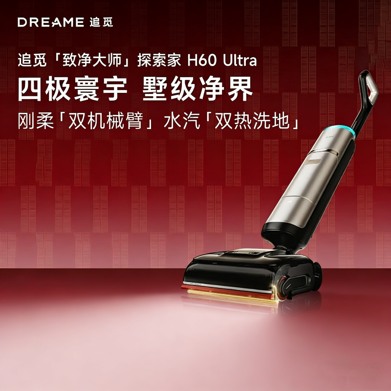 追觅 智能洗地机 H40 Ultra 0水渍,机械臂刮洗;100%全舱洗,100°C火山湖浸泡洗;0缠毛。瑞士PPA割毛齿刃;100%除油污,85°C环流热水洗地。