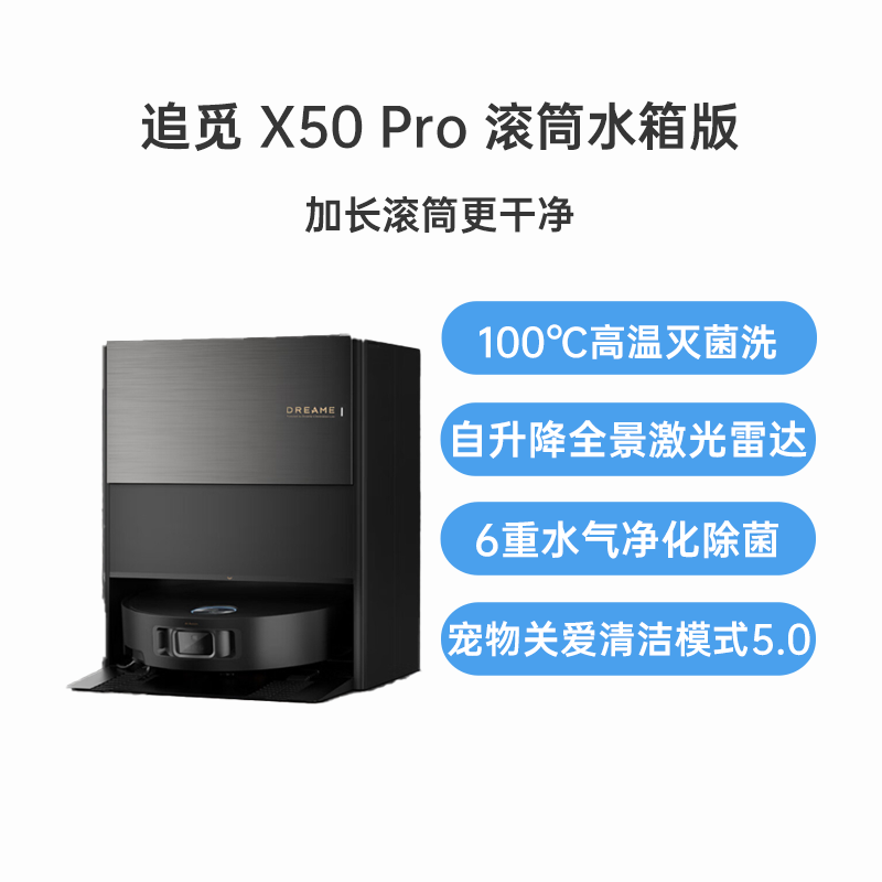追觅 扫地机器人 S50 Pro 水箱版 追觅首款100C热水洗智能旗舰扫拖机器人,100°C高温灭菌洗,机械足6CM越障,自升降全景激光雷达