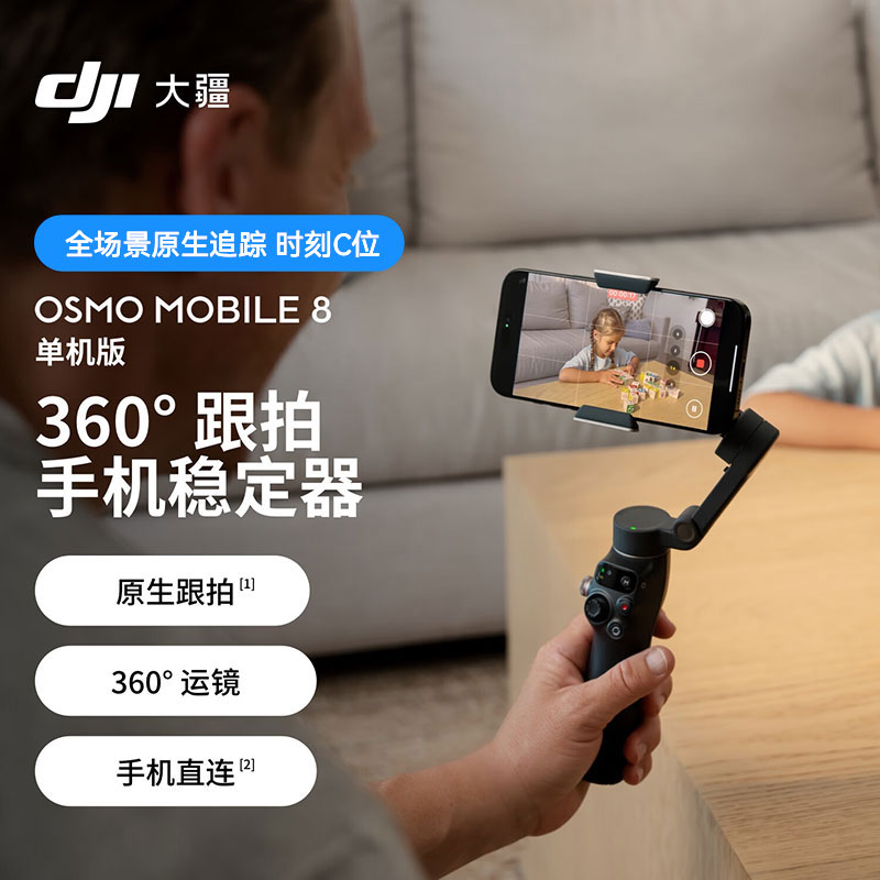 大疆 DJI Osmo Mobile 7 手持云台 标准版 轻快跟拍手机稳定器。全新智能跟随7.0,内置三脚架,300克超轻易握持,10小时续航